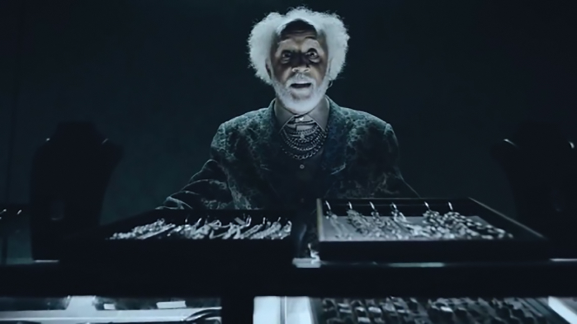 Este discurso introduz uma sequência, em 3D, de um corpo sendo construído em prata, seguido de várias imagens de pessoas negras, conferindo um enobrecimento à pele negra ao compará-la com a prata.