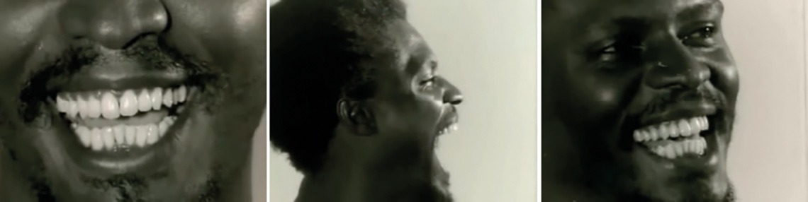 Após essas cenas, aparece um plano frontal próximo ao rosto, tipo de plano que seguiu recorrente por todo o filme, demarcando a representação do corpo negro. O fundo branco realça a estratégia do corpo como suporte. O olhar sempre fixo para o espectador é destacado por dois elementos: o corpo negro como representação e o fundo branco que realça a estratégia de ressignificar o corpo negro. “Quer dizer, o corpo é um coletivo dirigente e não um monarca que governa sozinho, a exemplo da consciência” (Sodré, 2002, p. 21). O olhar que fixamente parte para observar o espectador.