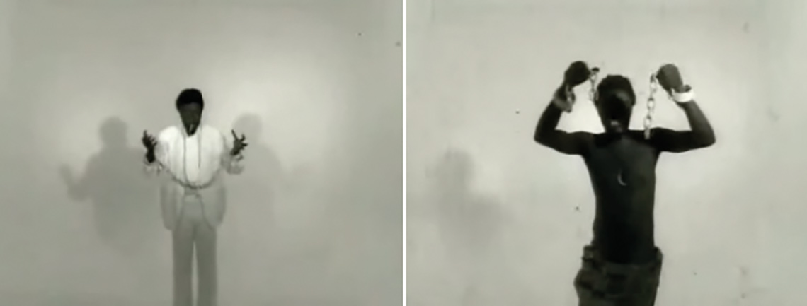 Formado por quatorze planos que mostram, por meio da pantomima, profissões e condições sociais do negro no Brasil e em grande parte da diáspora. Assim temos, em ordem de apresentação, o sambista, o jogador de futebol, o lutador de boxe, o ladrão, o mendigo, o preso, o intelectual. A representação dos estereótipos caracteriza os negros “pós-abolição”. A metáfora da corrente branca prendendo o pulso em todos esses tipos indica a permanência da escravidão. Nos seis planos finais o autor se apresenta com vestimenta ainda branca. Apesar das correntes que continuam a prendê-lo, o personagem vai intercalando algumas cenas em que aparece vestido com roupa africana (como no bloco dois). E com esta vestimenta caminha em direção à câmera. Rompe as correntes, a mensagem é óbvia, a de que a liberdade do povo negro só irá acontecer com a tomada de consciência da negritude e de sua africanidade.
