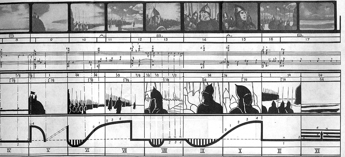 Image 1 – Tschumi’s Transcripts (Top) and Eisenstein’s Films (Bottom) adopt a similar technique in tracing the movement of bodies in space. Eisenstein’s montage theory is an inspiration for Tschumi’s work in using a succession of frames to enhance dynamism. Source: Socks Studio, 2011