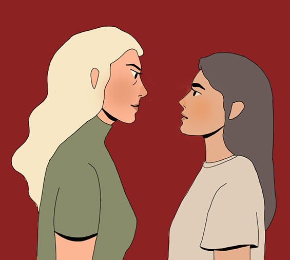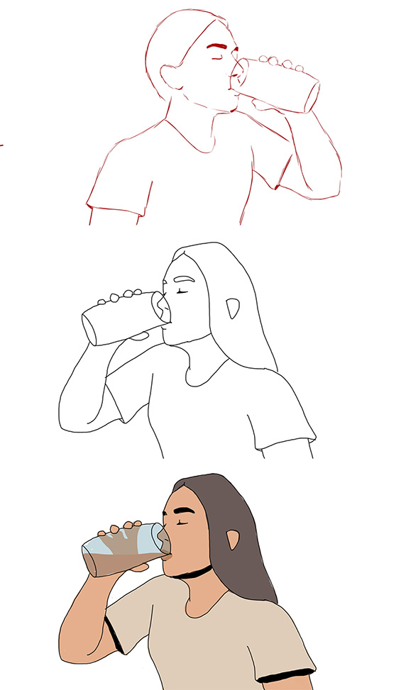 Depois de definida a estética, foi a vez de desenvolver as personagens. A primeira a ser construída foi Helena. Depois do traço definido, foi a vez de criar Marília.