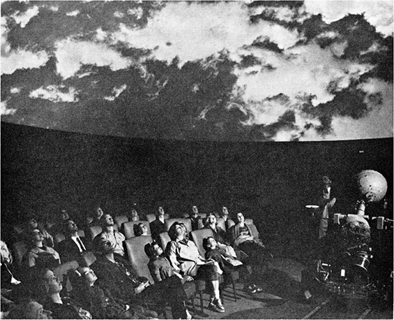 Apoiada na monumentalidade da arquitetura dômica, a projeção trouxe a possibilidade de uma experiência imersiva coletiva de grande impacto. Tal como outros dispositivos visuais que emergem na modernidade (como o panorama, o diorama ou o próprio cinema), o planetário propiciava à audiência um isolamento sensorial do mundo externo e possibilitava uma experiência de contemplação imagética também fora do habitual, já que, naquele momento, se tornava cada vez mais rara a visibilidade dos corpos celestes frente à intensificação da poluição luminosa nas metrópoles emergentes. Nesse sentido, é notório como, já em sua origem, o planetário por projeção suscitava certos tensionamentos entre sua intenção educativa original e seu caráter espetacular ou de entretenimento, conflito que permanece quase cem anos após seu surgimento (Griffiths 2008).
