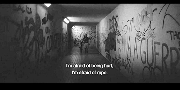 Figura 1 – Frame do filme. Tradução: “Eu tenho medo de ser agredida, eu tenho medo de estupro“.