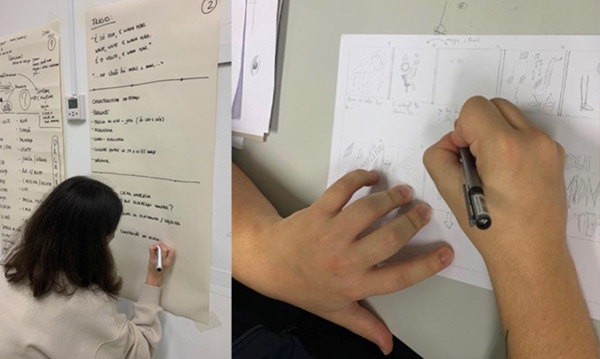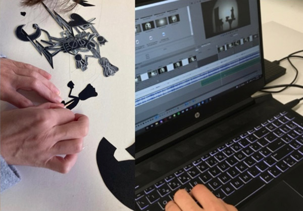 Neste projeto, pretendemos partilhar parte de um processo exploratório desenvolvido no âmbito do cruzamento entre analógico e digital, no contexto da unidade curricular de Introdução ao Pensamento de Projeto, em particular na área de design de comunicação. O projeto assumiu a configuração de um registo de vídeo onde sobressaí a dimensão do storytelling. À tradicional dimensão do storytelling vimos associada a dimensão visual, que na configuração de sombras em movimento procuraram contar uma história, envolver o espetador e fazer a comunicação de um espaço. Com esta proposta os estudantes foram desafiados a extrair o potencial de um texto e através da sua desconstrução ter a possibilidade de criar um conteúdo de vídeo. Em termos de metodologia de projeto foi focada a possibilidade de pensar linguagem visual a partir de processos de descodificação e construção de significado, em dinâmicas colaborativas. Neste quadro de provocação metodológica foram aguçados os modelos e as formas de sentir os processos de investigação e de ação. Queremos, no entanto, ressalvar, que a estratégia adotada não é em si inovadora. Significa isto, que todo e qualquer estudante de design gráfico ou multimédia deve ser confrontado com técnicas de pesquisa com recurso à utilização de fontes primárias como fontes secundárias e ainda fontes de pesquisa visual (Dabner, Stewart e Vickress 2019: 12). Verifica-se, neste cenário experimental, que através da animação de sombras os espetadores podem ter acesso a um conteúdo de comunicação, com a possibilidade as dimensões da forma, da estética e da mensagem, através de um exercício de fruição. O que pode surpreender, neste projeto, é o fascínio pela descoberta da relação com os elementos da equipa na realização de todo o processo. Esta vertente do storytelling visual provocou o envolvimento de todos os elementos nas atividades de exploração manual. Todos foram envolvidos na discussão e procura de soluções, que implicassem a possibilidade de realização de um vídeo, com um baixo orçamento e limitações de espaço e de tempo. Estes constrangimentos constituíram-se como força motriz para o recurso a materiais do uso quotidiano, sendo a própria caixa cenográfica realizada com material reciclado. Numa altura em que o digital se assume num lugar cimeiro, ao nível da infindável gama de soluções que oferece. Foi também curioso observar a afinidade com a dimensão da redescoberta de materiais “primários”, tais como, os diferentes tipos de papel, as soluções de cola, os pedaços de madeira, o uso de fio de algodão e outros elementos de natureza similar. A par da redescoberta dos materiais foi ainda possível perceber o jogo entre configurações e sobreposições para assegurar, no conjunto, a passagem da mensagem. Assim, a respeito da natureza da animação e da sua estreita relação com o gesto de quem a realiza, deixamos este pequeno apontamento de Benzaddi (1994: 22), que no domínio de práticas pedagógicas entendemos ser enriquecedor,