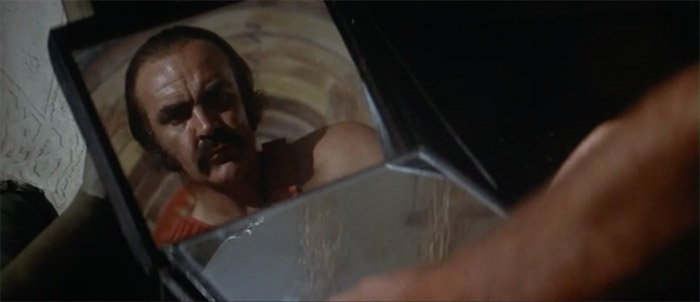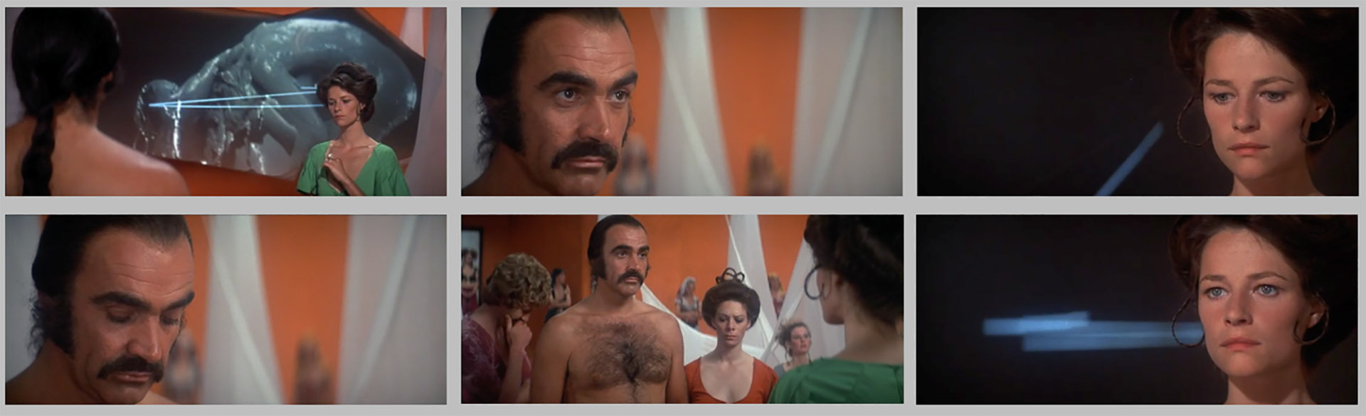 Reading Deliverance from a Freudian perspective, then, we might suggest that Boorman represents the mountain people as the modern subject’s id, living outside of the literal and metaphorical boundaries of civilized society. And in Zardoz too we see the pattern repeated, with the Brutals forced beyond the walls of the Vortex cities, to function as the Eternals’ id, pushed to the literal and figurative hinterlands of the unconscious, denied and unaddressed. Within the Vortex, science has not only managed to completely control and repress those instinctive drives, but it has also managed to do away with aging, death, and disease, leaving the Eternals to concern themselves only with gentle lives of almost entirely abstract thought alone. (“We took all that was good and made an oasis here. We few – the rich, the powerful, the clever – cut ourselves off to guard the knowledge and treasures of civilization, as the world plunged into a dark age.”) But, of course, this apparent utopia is also deeply and simultaneously dystopian. The repression of the id is a repression of desire. Indeed, a consequence of the disappearance of the need to procreate, as Consuela explains, is that “Eternals soon discovered that erection was impossible to achieve.” What the deep repression of the id forces has resulted in, then, is an entirely emasculated and feminized society. It is a society in which the male population has been essentially reduced to a coterie of effeminate and impotent milksops and, in what would appear to be the deepest of Boorman’s own anxieties, two women, May (Sarah Kestleman) and Consuela (Charlotte Rampling), appear to be in charge. But the primitive within cannot be denied unendingly for, as Freud teaches us, the repressed will inevitably return and frequently in the most damaging forms of phobia and neurosis.