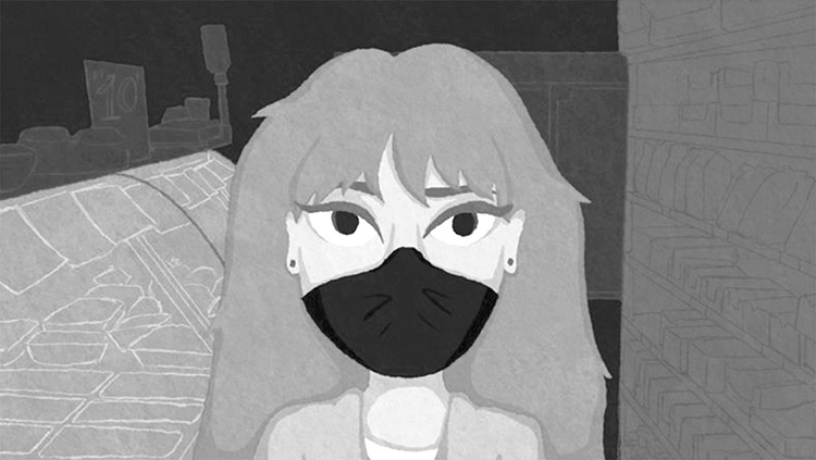 Foram pesquisados estilos de animação diferentes em que, essencialmente, temos o uso de rotoscopia (Figuras 3 e 4) sobre cenas de ação viva; cenas animadas com características de cartoon (Figuras 1, 2, 6 e 7); e cenas animadas abstratas (Figura 5). Os softwares utilizados foram Procreate, para ilustração, e After Effects para as animações.