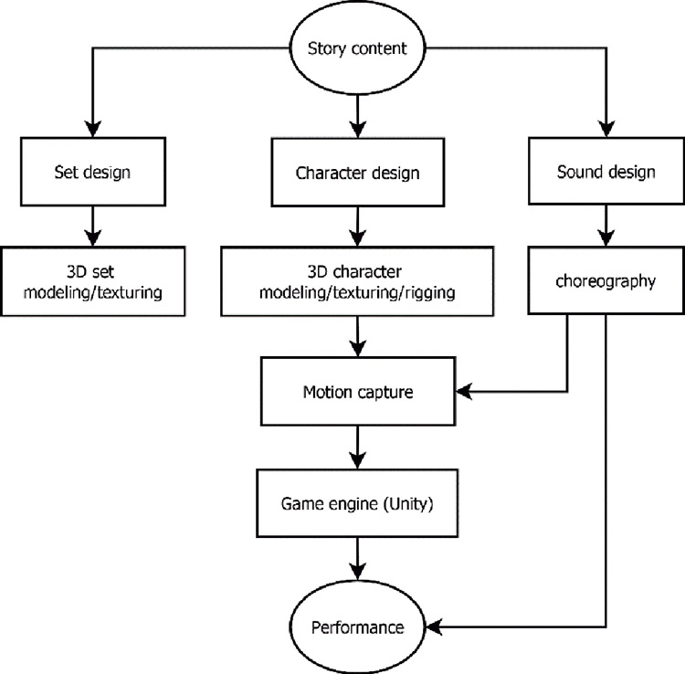 Due to a potential collaboration between the project’s host and the Hakka Communication Foundation, the topic was initially chosen to be related to Hakka culture. One of the technical forms that this project also aims to explore is the remote collaboration between virtual characters and physical dancers. With the fast data transmission of fifth-generation networks (5G), there have been recent performances that utilize this form by projecting virtual performance images and interacting with real dancers, providing audiences with new sensory experiences (Meador et al. 2004; Lisowski et al. 2023).