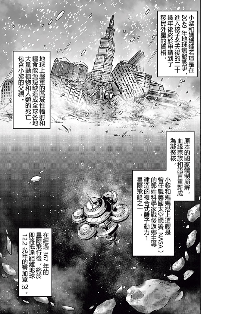 Since it is so close to its host star, it is possibly tidal locking, also known as synchronous rotation, which means that one planet takes the same amount of time to rotate around its own axis as it does to revolve around its host. For example, the same side of the Moon always faces the Earth. Because of the tidal locking, the planet’s twilight stripe is the only region suitable for life, and this is where the story takes place. The story scenario is built around these scientifically knowledge settings about the exoplanet Teegarden b, as well as inspiration from the history of Hakka immigration to Taiwan. The novelization of the sci-fi story, as well as the manga, are ongoing. Image 5 depicts a page from the manga. Following the current transmedia trend in popular entertainment industries such as the United States and Japan (Jenkins 2010; Schiller 2018; Ryan 2015), this story could eventually be adapted into a video format such as a TV series, movie, or even a game. The transmedia journey of ASOMROF is still ongoing.