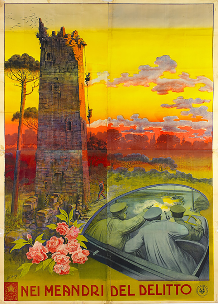 Nei meandri del delito (M. Caserini, 1912), é uma obra perdida, mas resta-nos um belo cartaz assinado por Anselmo Ballester. Tudo indica que se tratava de uma história de crime e mistério. Igualmente interessante é o cartaz de Scienza Fatale (A. D. Abbati, 1913), assinado por Leopoldo Metlicovitz. Talvez não perdido, mas certamente “invisível”, este drama de suspense, produzido pela Pasquali Films, foi protagonizado por Lydia de Roberti e Giovanni Enrico Vidali (1869-1937), rostos conhecidos do grande público.