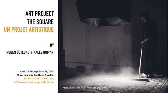 Tais questionamentos e inquietações são também activados de modo inegável em The Square, com ênfase no comentário ácido sobre o sistema da arte contemporânea, território bastante familiar ao cineasta. Afinal, o filme tem suas origens em um projecto artístico real realizado pelo próprio Östlund em 2014 em parceria com o produtor Kalle Boman, para um museu de design na Suécia. A proposta era surpreendentemente semelhante à obra de arte que dá título ao filme (Figura 3), consistindo em um quadrado desenhado no chão no centro da cidade; e qualquer pessoa que nele entrasse se comprometeria a tratar os outros da mesma forma.5