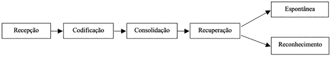 Nunes (2008, 133) começa por dividir a memória voluntária de involuntária: define a memória voluntária como aquela que vem ao pensamento por nossa própria vontade, por procura intencional; e a involuntária, quando vem à mente espontaneamente, de modo automático, sem aparente intenção, sem esforço e sem o nosso controlo. A capacidade de recordação de experiências é dividida essencialmente em três níveis: sensorial, curto prazo e longo prazo, com Ferrão e Rodrigues (2000, 69) a relembrarem a volatilidade da memória sensorial (ou icónica). No mesmo sentido, Evans, Jamal e Foxall (2012, 91) descrevem a memória sensorial como um ‘armazenamento’ temporário e uma vez que foi formada sem atenção ou interpretação, pode ser rapidamente perdida. A memória de curto prazo reflete um processo consciente e ativo de memorização da informação recebida. Ferrão e Rodrigues (2000) comparam a memória de curto termo (ou primária) com a memória RAM dos computadores. Na mesma analogia, referem a memória ROM para descrever a memória de longo termo (ou secundária), aquela que retém as informações percecionadas e que são selecionadas e codificadas de uma forma permanente. A relação da memória com a aprendizagem e a sua interdependência é igualmente abordada por estes autores que relevam a importância de informação prévia ou conceitos-âncora na retenção de novas informações. Segundo Tomé (2003, 17), esta viagem de dados entre a memória de curto prazo e longo prazo é determinada por fatores como “a experiência do mundo e da vida”, que fortalecem “a passagem da informação ao estádio superior do conhecimento”. A memória é também referida por Lafontaine (2007, 51) como o símbolo da interioridade subjetiva e como papel central na psicanálise e do caráter irreversível associado ao conceito do inconsciente de Freud. Este processamento de informação, que ocorre em tempo real, de uma forma subliminar ou não, ocorre na rede neuronal, no que para Ernst (2019, 170) representa “uma espécie de microarquivo dinâmico de instantes”. Para este autor, tanto esta perceção neurológica como a cultura digital tem base na memória, mesmo que no “efémero armazenamento de curto prazo”.