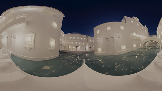 O trabalho resultou numa animação digital desenvolvida para ser exibida através de um HMD (Head Mounted Device) de realidade virtual que tem como narrativa principal uma viagem feita ao longo do percurso de um “canal veneziano” entre edifícios altos e antigos, com fachadas repletas de vários tipos de janelas e portas adornadas. Varandas e as pontes aproximam-se do espaço do percurso da animação preenchendo o espaço digital.