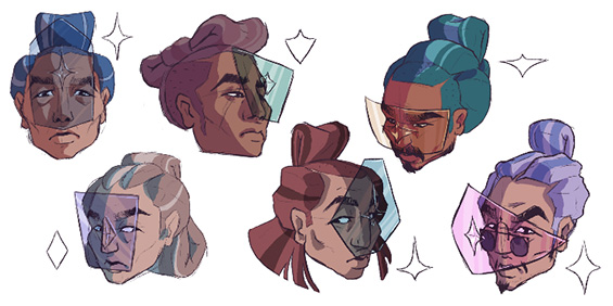 Com a base da narrativa criada, foram desenvolvidas algumas ilustrações e concept art, tanto da primeira cena como de algumas ideias para as personagens.