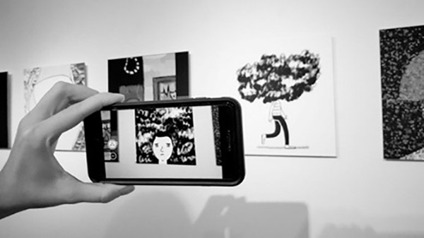 Imagem 1 – Exemplo do funcionamento da aplicação Artivive num contexto de uma galeria de arte (adaptada de https://vrscout.com/news/artivive-bringing-classic-art-to-life-in-ar/ a 2 de setembro de 2021).