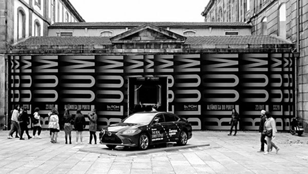 O conceito do desdobramento dos elementos gráficos para os edifícios foi o encaixe de letras e glifos nas fachadas, apropriando-se das suas formas. O facto de cada edifício apresentar diferentes curvaturas, retas e profundidades, criou uma liberdade no desenho e no encaixe das letras sobre os mesmos. O objetivo do encaixe de letras e glifos foi o de demonstrar uma forma de comunicar através da tipografia cinética a três dimensões. O objeto da comunicação do evento volta a ser o mesmo só que, ao invés de ser em objetos táteis e digitais, está presente em monumentos históricos e relevantes da cidade.