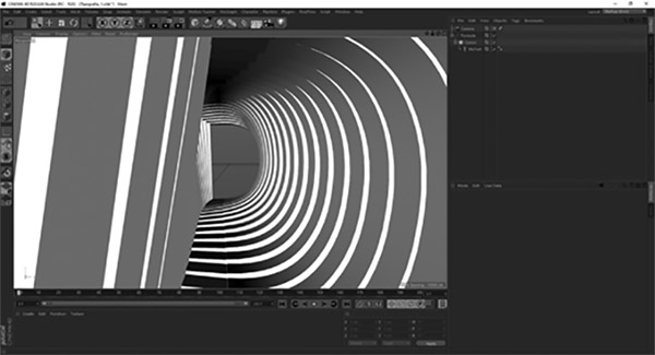 Os primeiros testes em três dimensões são fruto do uso de um “Cloner” dentro de letras ligadas ao evento. O “Cloner” foi o Plug-in mais utilizado nos ensaios do software 3D. Este Plug-in permite repetir o objeto ao qual é aplicado o número de vezes que o utilizador precisar. Possibilitando também que as posições das letras possam variar de forma aleatória e com ângulos de diversas proporções. O uso do “Cloner” permite esta variação quase ilimitada da letra, tendo a presença desta ferramenta do software, uma prática frequente até aos testes finais do projeto.