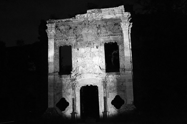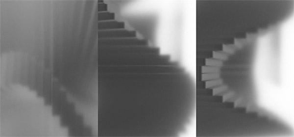 Para fortalecer o conceito visual, recorreu-se a outros elementos relacionados com a mensagem do evento. A memória, por toda a ligação que tem com os espaços selecionados para projetar, tem uma simbologia do ponto de vista da cor que a liga à cor cinzenta. Assim, foram testadas abordagens no software para tornar o ambiente com maiores tons de cinza. Foi aplicado também um desfoque gradual de maneira a dar a impressão de distância. A conjugação destes dois elementos, memória e percurso, começou a ter uma ligação cada vez mais sólida graficamente.