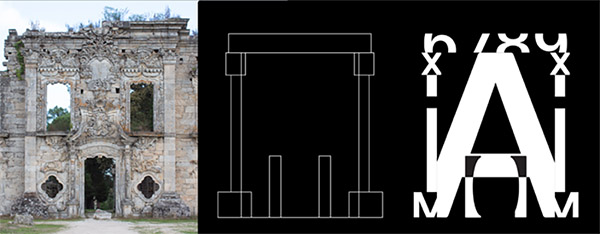 Outro dos impasses detetados na projeção, foi a forma como as letras se relacionavam entre si, de forma que foi redesenhado o encaixe das mesmas na fachada, dando-lhe maior liberdade e legibilidade. A composição dividiu-se em seis partes mais uma vez, no entanto com um maior espaçamento entre as letras. Nesta composição, tirou-se partido do uso de glifos pela verticalidade e facilidade de encaixe que os mesmos têm nas diversas zonas da fachada.