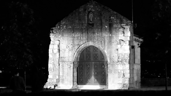 O segundo espaço de projeção foi a igreja de Santa Maria, onde o material e a dimensão do espaço facilitam o desenvolvimento da projeção. Do ponto de vista da animação, foi mais uma vez desdobrado o conceito na porta, tirando partido do seu formato. Tirou-se partido da letra “I” devido ao seu formato vertical para representar a animação da porta. Todas as condicionantes favoráveis do espaço permitiram que apenas um teste fosse suficiente para produzir a projeção final na Igreja. Do ponto de vista do dinamismo tirado da letra “I”, a animação esteve em volta do formato da letra. Sendo uma letra que valoriza tanto a sua leitura na sua verticalidade, tirou-se partido da sua altura e dos movimentos que poderia trazer à animação.