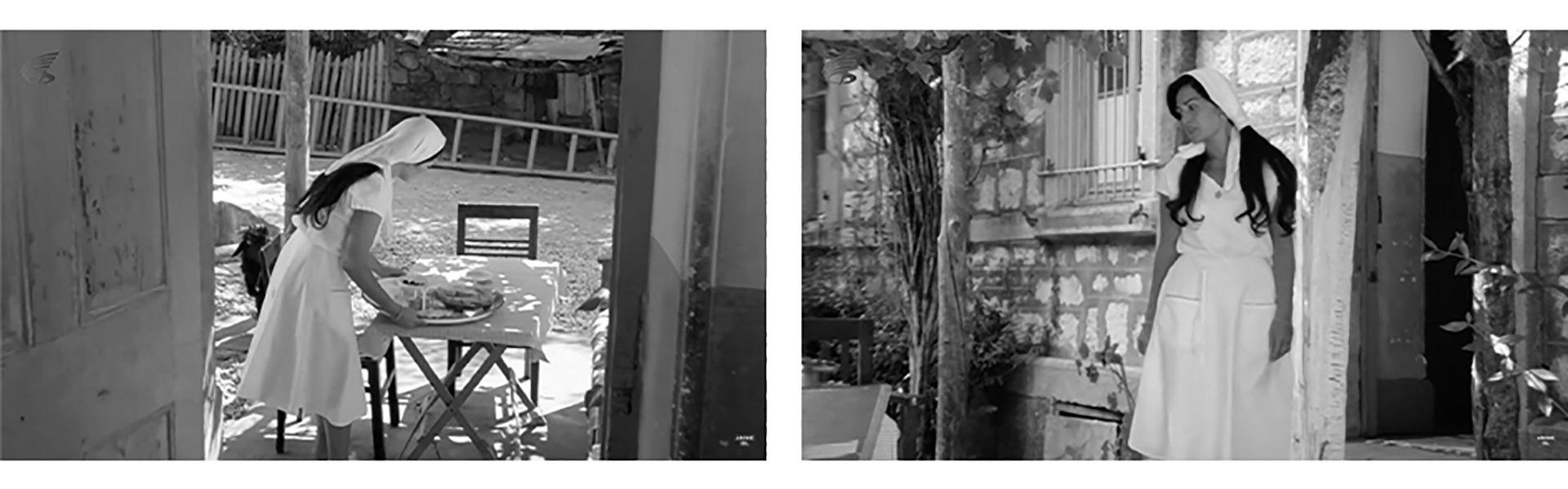 In the movie, the house is not drawn as a safe space as in the traditional approach. The uncanny atmosphere drawn by the narrative for the outside continues at home as well. Her home is a place for Mine where she is raped by her husband, harassed, and attacked by the townspeople. The public sphere, on the other hand, is an environment of oppression surrounded by the male gaze for her. Therefore, the home is represented as a cage in which Mine is trapped but cannot get out. She is mostly seen in front of the window or on the doorsteps, which are the thresholds that exist between the inside and the outside. (Image 5) She shuttles in and out of the doorway, watching through the window the station and people coming and going. This reflects her in-between state of mind. She is in search of an identity and the house does not meet the aspirations of the character.