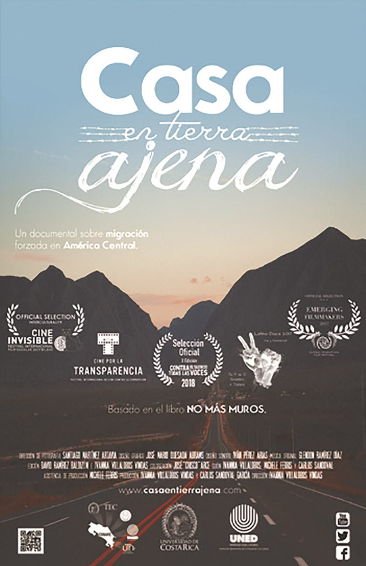 O longa-metragem documental Casa en Tierra Ajena realizado em 2017 pela diretora costa-riquenha Ivannia Villalobos Vindas foi baseado na obra do professor costa-riquenho Carlos Sandoval García, No más muros. Exclusión y migración forzada en Centroamérica, publicado em 2016. Sandoval estará ativamente presente na realização do documentário como poderemos observar nos créditos do filme, ele será creditado logo no inicio quando nos é indicado que o filme foi baseado em seu livro, mas igualmente estará presente na coordenação geral, na produção, no roteiro literário e na captação do som direto. A estrutura clássica e expositiva do documentário estará evidenciada nas diversas sequencias que compõem a obra. O documentário é, sobretudo, constituído de entrevistas e depoimentos de pessoas que estão em processo de migração, mas igualmente teremos o ponto de vista de pessoas que buscam auxiliar os migrantes ao longo de seus deslocamentos, muitos deles serão religiosos vinculados à igreja católica. Além das entrevistas que permeiam todo o documentário teremos a presença de cartelas que trazem informações factuais e concretas sobre a migração na América Central, como esta que abre o documentário, “Na América Central migraram aproximadamente entre 10% a 12% de sua população”, mas igualmente frases mais gerais e não contextualizadas, a exemplo “O direito de não migrar” ou “Direito à esperança”. O uso de cartelas estará presente ao longo de todo o documentário e tem por objetivo trazer o olhar e a voz da realizadora, ou seja, o seu ponto de vista. Neste sentido podemos estabelecer uma aproximação com o texto de Bill Nichos, “A voz do documentário”, quando este afirma que,