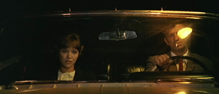 O início do filme (cerca de 00:05:30) vai oscilando em vários tons de uma paleta monocromática. Uma conversa cheia de vacuidade em ângulo normal, onde um homem descreve, elogiando, as características de um carro, e uma mulher que do mesmo modo detalha a qualidade de produtos de beleza, saídos dos comerciais e anúncios publicitários, como se ambos fossem vendedores, tudo isto envolto num tom vermelho sombrio. Estes monólogos podem traduzir-se como sendo um espelho de uma nova sociedade que estava a nascer, e simultaneamente a revelação dos interesses particulares de homem e mulher.