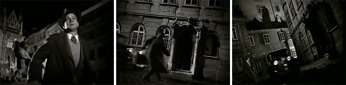 Pero esos trabajos sólo nos muestran los lugares como nodos de un recorrido que el filme va trazando en silencio a través de sus personajes centrales, Holly Martins, Anna Schmidt y Harry Lime.