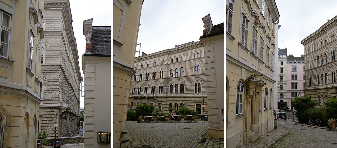 Durante mi visita a Viena, relevé la Josefsplatz y, pretendiendo recomponer el camino de llegada y de huida de Anna Schmidt y Holly Martins, continué fotografiando la calle Reitschulgasse, enfocando y adentrándome en la Agustinerstrasse [véanse Fotos 7, 8, 9 y 10].