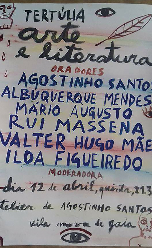 O Eugénio de Andrade, o Pina, o Saramago são meus consultores a quem eu recorro muito frequentemente … deverá haver ligação entre a literatura e as artes… os escritores são uma espécie de tapete voador…