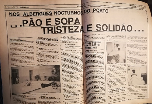 Figura 8 - Capa do jornal Observador e imagem da reportagem sobre Os Albergues Noturnos do Porto