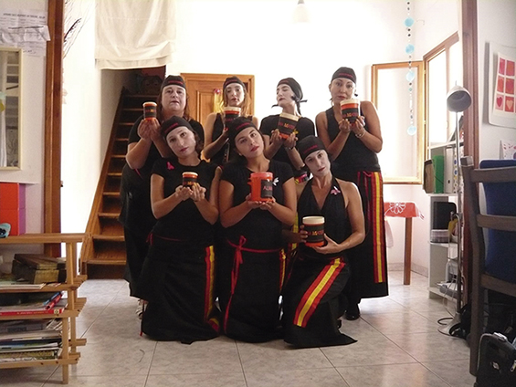 Na performance em Barcelona, usaram o mesmo figurino mas incluíram algumas variações: pintaram os rostos de branco (uma das companheiras Aída Miró é um palhaço), lábios vermelhos e unhas amarelas (como símbolo da suposição dessa ameaça iminente). No peito foi colocada uma borboleta amarela, também símbolo de esperança.