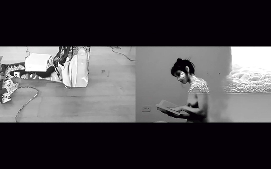 É também a partir deste limbo, que a ação dual da performance discorre e se desenvolve: o primeiro momento, foca-se na exploração sonora, apresentando fricções associadas ao gesto das lides domésticas, atuando como processo de iniciação; um segundo, centrado na plasticidade da imagem, ou seja, na articulação entre as ações de duas performers (in loco e no espaço virtual), com objetos reais e efeitos digitais gerados em tempo real e projetados.