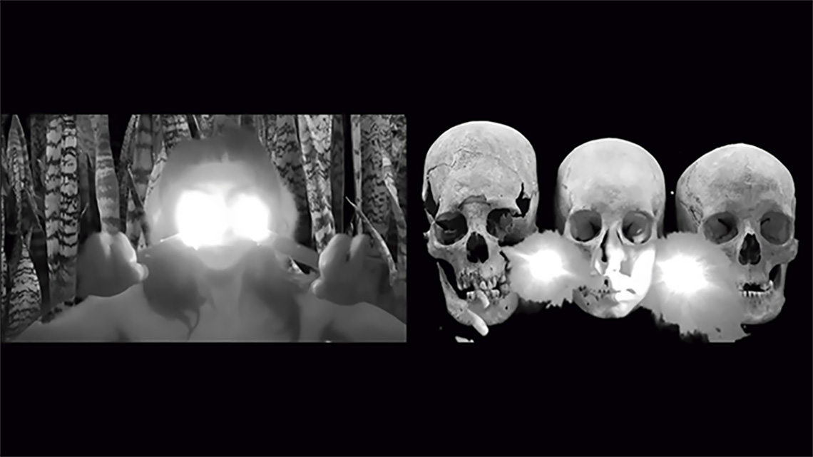 The universality’s myth power, and the sense of the sacred exercises, is explored in the multimedia installation performance “Arquétipo(grafia) obscura do feminino”, from the Russian tale “Vassalissa, the Wise”. The confrontation between Present Body/Virtual Body (and transpersonal) versus Time/Space dynamics (real and digital, and sound / word dialogue in the image) is related to an ancient psychic mapping about induction in the underground and wild world of the Female God, and with the recognition of the primordial woman’s instinct in varied ritualistic tasks.