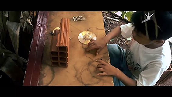 A casa de tijolos possui televisão e computador que na realidade são cds, caixas de sabão em pó que foram jogados no lixo. Nesse momento não se sabe o que eles estão vendo no computador ou na televisão, simplesmente pegam o controle e ligam.
