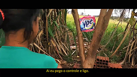 A construção do mundo imaginário pela índia Kaiowá nos leva para “além de qualquer possibilidade material para um lugar mais interessante e melhor”, segundo (Braga 2015). Todo seu imaginário é a replicação de um mundo urbano de adultos como shopping, salão de beleza, televisões, conto de fadas europeu de Chapeuzinho Vermelho e Os três porquinhos. “E é desse registro que o curta nos coloca nesta relação de identificação/estranhamento, dessa menina que vive dia a dia a perda de sua cultura original.” (Braga 2015)