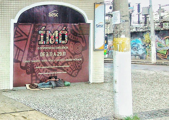 A foto revela um invisível social e político onde um morador de rua dorme embaixo da frase “despertar da consciência”. Algo que é visto todo dia, porém ainda se encontra invisível.