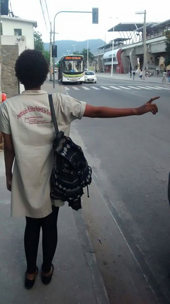 A segunda foto mostra uma sala de aula vazia, onde o conceito de invisibilidade é demonstrado na ausência. Alguns alunos retratam a ausência através da morte de alguém próximo ou de algo que não está ali. A última representa uma aluna que possui o direito da gratuidade no transporte público, mas é invisível diante do motorista que não para, na grande maioria das vezes, para ela poder retorna para casa, ou seja, um direito que não é respeitado.