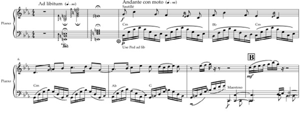 Figure 1: First bars of “The Room” by Mladen Milicevic, and transcribed for solo piano by K. L. Schneider. Source: Mladen Milicevic, email message to author, July 10, 2017.