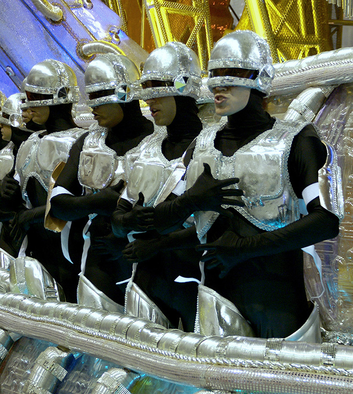 Figura 2 – Componentes fantasiados como Robocop, Unidos de Vila Isabel, 2007. Fonte: Wigder Frota. Acervo pessoal.