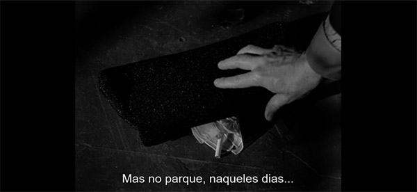 Logo, no início, já somos informados que Michael matou um homem em sua época de combatente na guerra da Espanha. O assunto torna-se recorrente, ao longo da reprodução, um modo de cultivar dúvidas em relação ao caráter da personagem, expondo o que ela poderia ser capaz de fazer. Isto dialoga com a afirmação de que “o film noir é um filme de morte, em todos os sentidos da palavra” (BORDE; CHAUMETON, 2002, p. 05, tradução nossa). Durante os primeiros planos, somos apresentados à cidade, enquanto escutamos a voz de Michael narrando os acontecimentos que se sucederam a partir de um encontro fortuito no parque – o que já denota traços peculiares do noir, a narração em off e a casualidade. O tom sarcástico e cínico oriundo da escola hard-boiled também está presente, uma vez que o anti-herói nos diz que se estivesse em plenas faculdades mentais as coisas não teriam progredido da maneira em que se deram os fatos. Nesse momento, Elsa surge pela primeira vez, uma mulher loira, muito bonita do ponto de vista do padrão estético da época, passeando dentro de uma carruagem. Nas cenas seguintes, Elsa é fotografada sob uma luz brilhante em contraste com a escuridão da noite, enquanto Michael a observa através das sombras. Tal disposição de luzes reflete o efeito que a beleza da personagem feminina exerce sobre o marinheiro. Nota-se o espectro dessa mulher refletido na janela de vidro da carruagem, recurso frequentemente utilizado cujo intuito é revelar a duplicidade de Elsa. Uma melodia arrastada e baixa ajuda a sugerir uma atmosfera quase romântica, enquanto Michael profere as palavras “Boa noite”. Quando a carruagem finalmente para, até então estava em uma velocidade lenta, ele oferece um cigarro, alegando que aquele era o seu último, outra marca comum: o fumo está sempre presente no film noir. Contudo, Elsa não aceita, afirmando não fumar. Nesse momento, ambos trocam olhares intensos por alguns segundos até que ela finalmente aceita o cigarro e o guarda em sua bolsa. Podemos afirmar que a intensa troca de olhares é um indicativo do romance que está por vir. A cena termina e o plano seguinte enquadra uma bolsa preta aberta e caída no chão (fig. 1), trata-se da bolsa que anteriormente a mulher carregava em seu colo. Isso pode ser inferido devido ao cigarro que jaz próximo ao zíper, o qual está enrolado em um lenço do mesmo modo que ela tinha guardado.