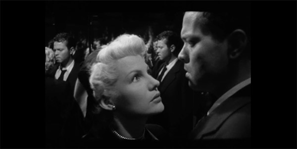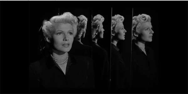 Michael é retirado de dentro do teatro pelos capangas de Elsa, que o deixam em um parque de diversões abandonado, local em que acontecerá o desfecho da trama. A sequência na Casa dos Espelhos continua, até os dias de hoje, sendo uma das mais emblemáticas do cinema hollywoodiano. O uso da superfície espetacular denota a importância do princípio da repetição dentro do universo do film noir, pois desorienta deliberadamente as personagens e o espectador. As imagens duplicadas replicam a falsidade daquelas pessoas, confundindo a todos, não sabemos o que é real (fig. 4). Os cenários grotescos do parque de diversões imprimem um viés surrealista e expressionista à obra e reforçam o assombro e a desconfiança daqueles que estão em cena. Nesse contexto, a femme fatale mostra sua verdadeira índole ao amante: egoísta e manipuladora, cuja única paixão é o dinheiro (fig. 5). Ela e o marido matam um ao outro, enquanto o anti-herói presencia tudo, inclusive o diálogo final do casal. O’Hara acaba sendo inocentado devido a uma carta que o Sr. Bannister deixa endereçada ao promotor do caso de George, já prevendo as intenções de sua esposa. Todavia, o anti-herói encerra a sua participação com um ar derrotista, ou seja, cumpre-se a premissa de que não existe final feliz, apenas o trágico.