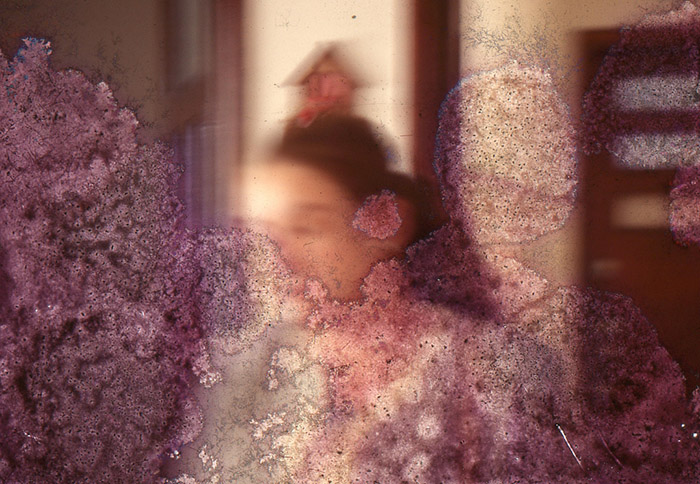 Para os puristas da fotografia, uma imagem ou material fotossensível tomada por fungos é sinal de alerta. Geralmente, ela é isolada e tratada ou virá descarte, antes que invada o resto do material. Na poética do tempo, trabalho com esses arquivos descartados, que já adentraram esse processo de deterioro, e que muitas vezes continuam, ao processo do tempo, crescendo como os fungos nas placas de Petry de laboratórios. O fungo invade, e em um processo de hibridação natural, se funde a matéria e possibilita a criação de uma nova imagem.