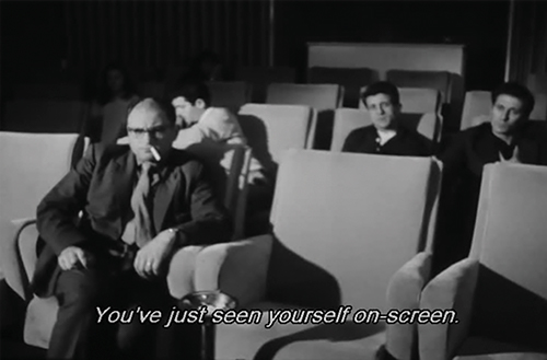 Em Chronicle of a Summer (1960), o antropólogo e etnógrafo Jean Rouch, juntamente com o sociólogo Edgar Morin, propôs uma função reflexiva para o cinema. Este filme parte do objetivo de averiguar qual o nível de sinceridade com que as pessoas respondem perante uma câmara de filmar. Após a realização de várias entrevistas a um conjunto de indivíduos, sobre temas políticos e sociais da época, os entrevistados são confrontados com as filmagens e questionados sobre o nível de verdade que um filme pode apresentar. O próprio debate é também filmado e incluído no filme (Fig. 10).
