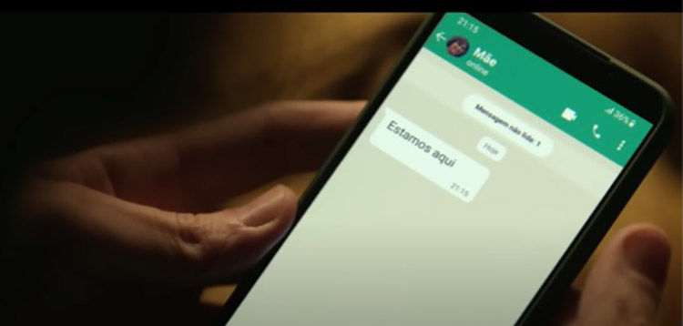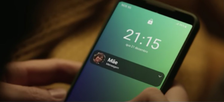Observamos também que a mensagem no ecrã do telemóvel tem um duplo significado. Pode ser interpretada como a solução dos serviços da NOS e simultaneamente dá resposta ao estado emocional do protagonista, ou seja, à necessidade do encontro com a família.