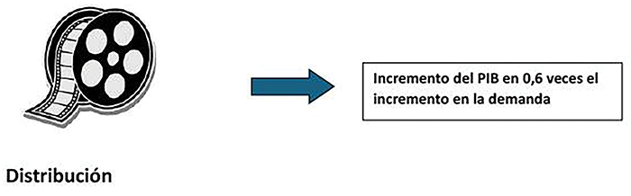 En la otra parte, la distribución también presenta una ata capacidad de impacto, presentando una alta capacidad de generación de rentas que se resume en una producción adicional en la economía del 70% de la inversión y demanda realizadas en este sector. Finalmente, las salas de cine son el colofón a la contribución del sector del cine a la economía española, con una capacidad de generación de renta y empleo, que está cerca de ser 1,5 veces la media de todas las actividades económicas. Este se ilustra con el impacto estimado de la compra de una entrada para una película en el conjunto de la economía, que más de un 50% adicional a su propio valor.