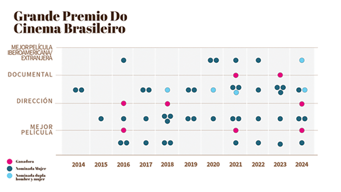 Gráfica 3 – Resultados de ganadoras y nominadas en el Grande Premio do Cinema Brasileiro. Elaboración propia.