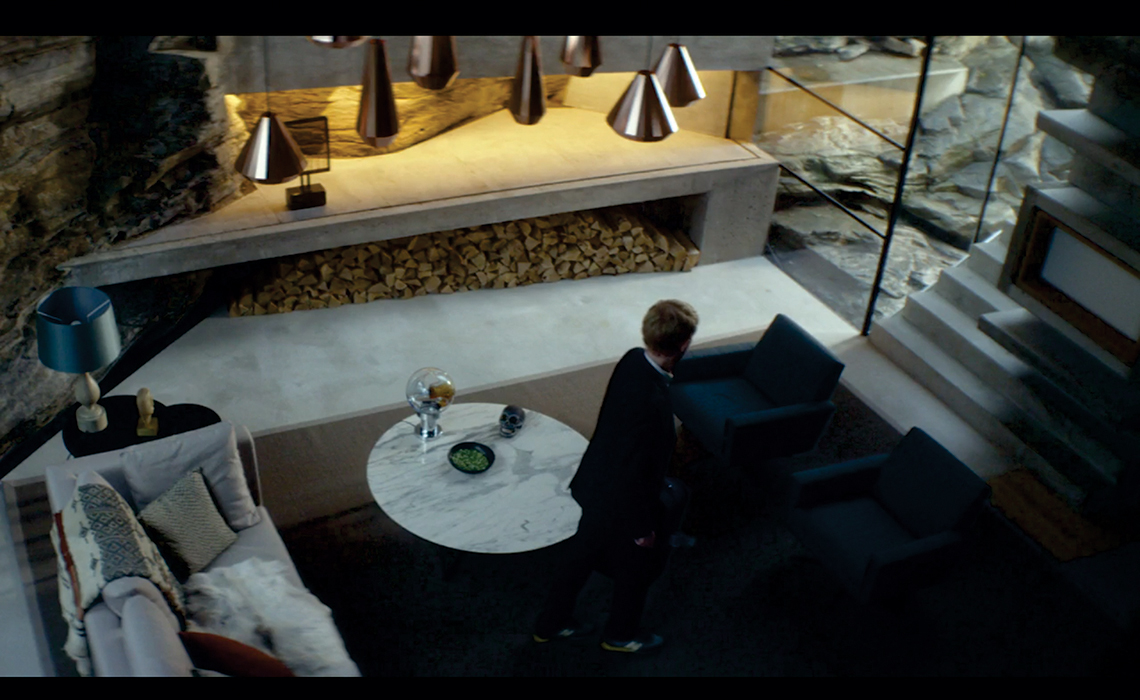 Diferentemente de Iguais, Ex_machina é, em muitos aspectos, visualmente similar ao presente. Tanto os cenários, como os figurinos, poderiam compor uma trama que se passa nos dias atuais. Não obstante, a direção de arte é gélida. A história possui como cenário principal a casa de um milionário programador. Trata-se de um ambiente elegante e espaçoso. Assim como em Iguais, o concreto e a cor cinza estão presentes em grande parte dos ambientes.