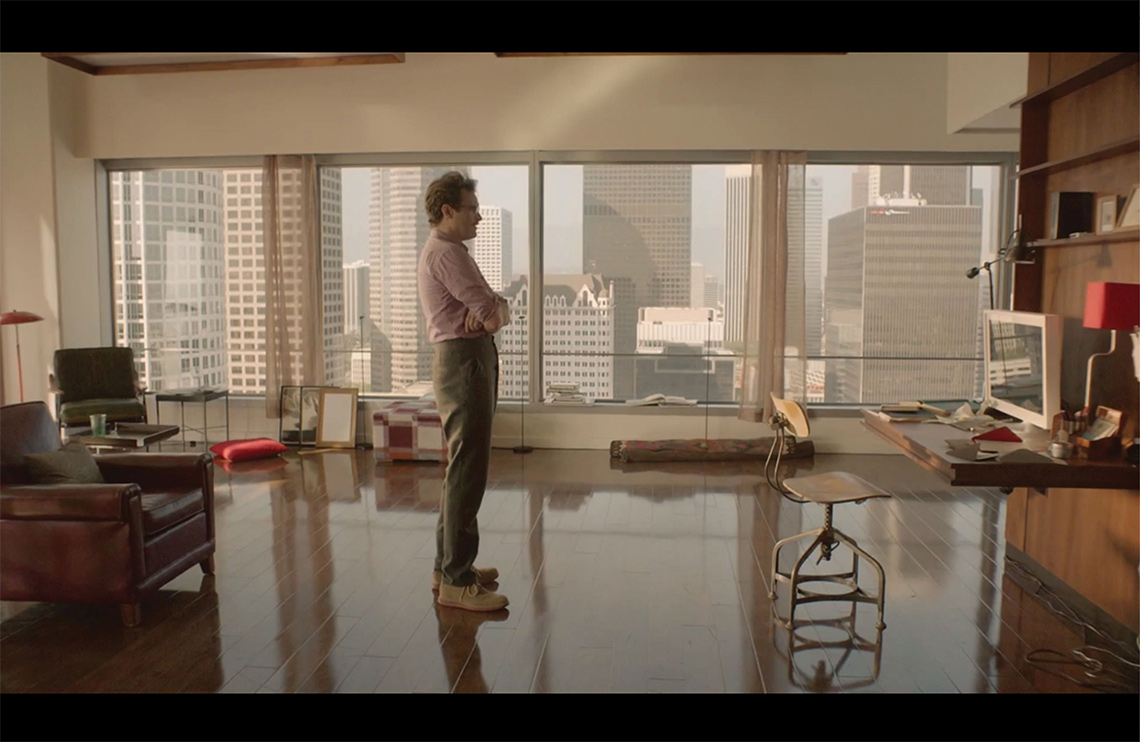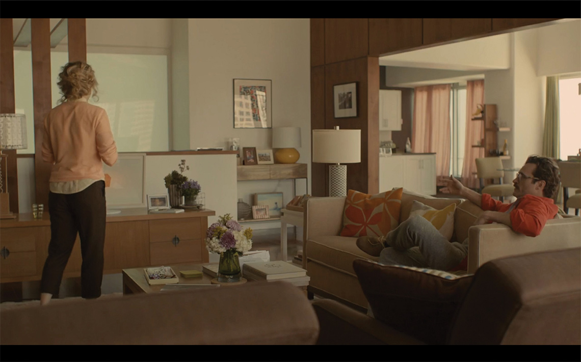 Observa-se que o filme é solar. Os cenários dos apartamentos de Theodore e Mia, com grandes janelas sem cortinas ou em cores distintas, contam com entrada de sol, intencionalmente trabalhada pelo fotógrafo holandês Hoyte Van Hoytema. Foram utilizados espelhos em helicópteros posicionados para criar uma iluminação e grafismo que remete ao pintor Edward Hopper e à solidão em planos gerais (Figura 6), frequentemente retratada pelo artista e que se coaduna com o conflito do protagonista de Uma história de amor. Como lembra o fotógrafo brasileiro Edgar Moura,