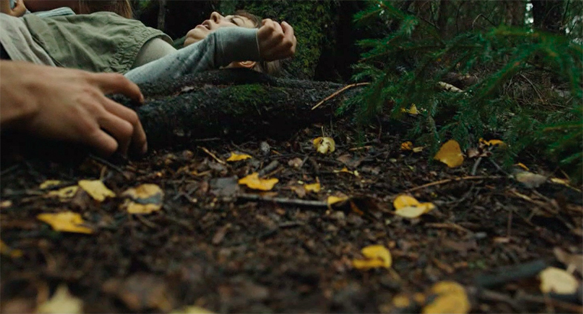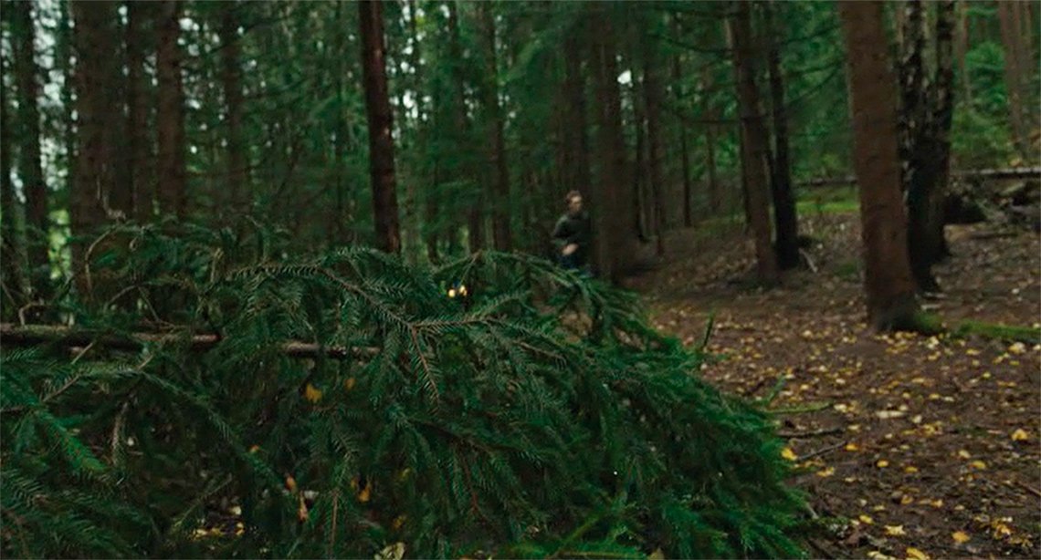 Historical places have an emotional aura of authenticity and in Poppe’s film it seems that we are on the historical site of Utøya, but in the behind the scenes of Utøya (2018) Poppe explains that another island is chosen because of its manageable size and topography. However, he states that it was important to have an Island that looks like the original. Most of the audience would infer that this was the actual historical place and add a layer of authenticity to the experience. Through the knowledge from news articles and TV reports the audience would have expectations on how the diegesis should look like and it would not create the suspension of disbelief if the film was shot differently. The topography with open meadow, woods and rocks close to the sea creates a visual dynamic that compensates for the lack of dynamic in narrative levels. This give the experience of the film a bodily quality described well by an informant