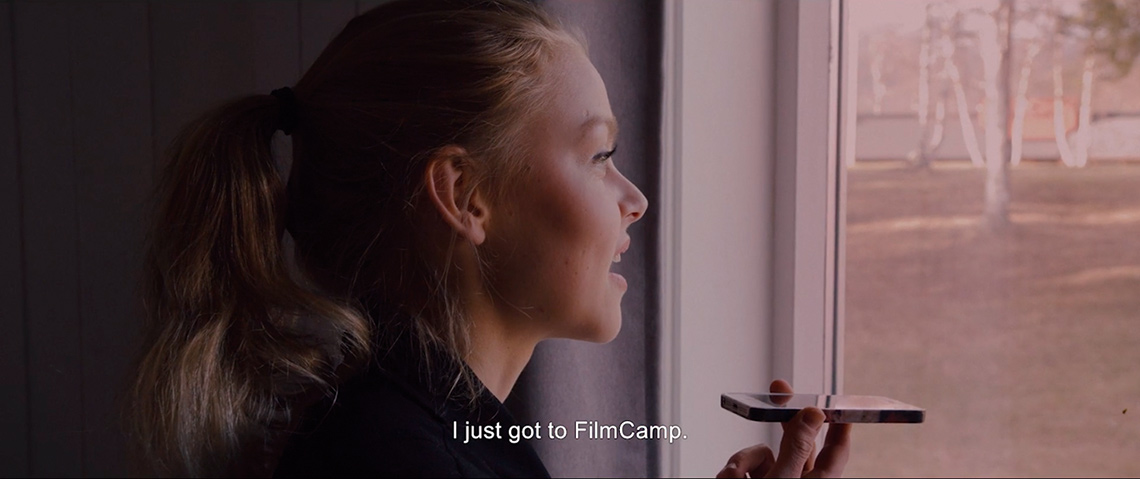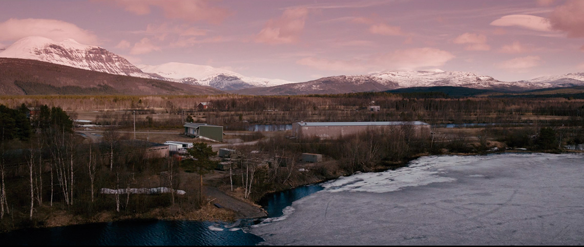 Also this film starts with a helicopter shot, not over oslo, but over the film camp that lays in idyllic nature in the north of norway. The image is accopaigned with birds chirping and a positive gitar plucking.